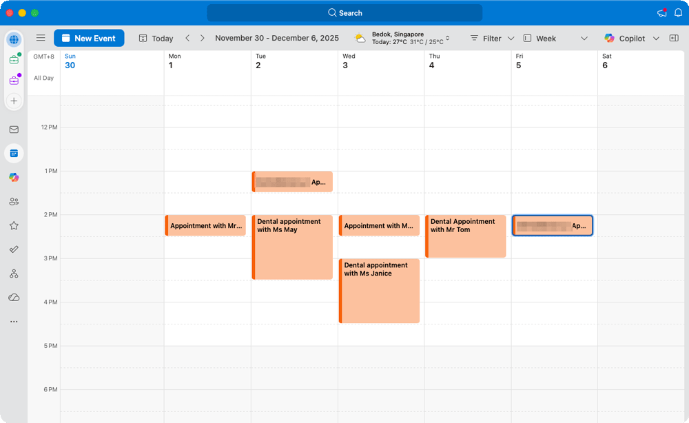 After checking Dr. Yee’s calendar, we confirmed that the booking appeared exactly as expected. The date and time were correct, the user’s email was captured, and the appointment title and summary matched the information we provided.